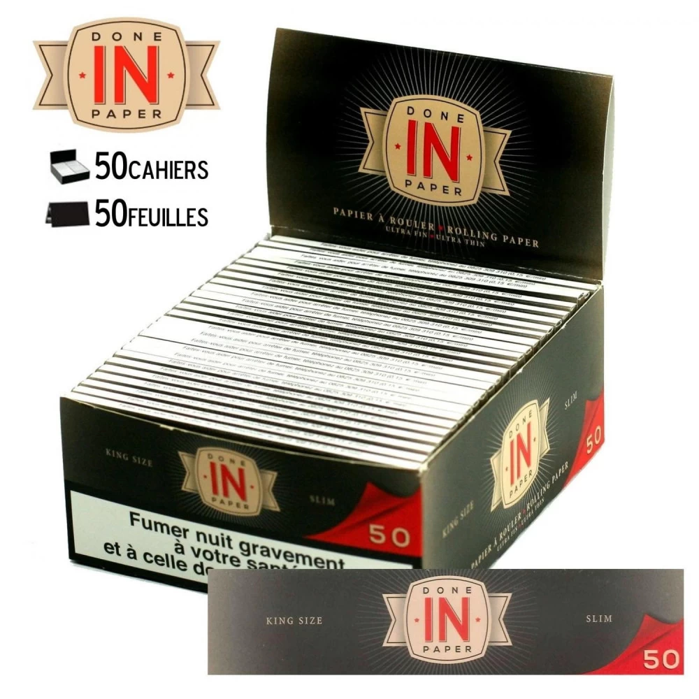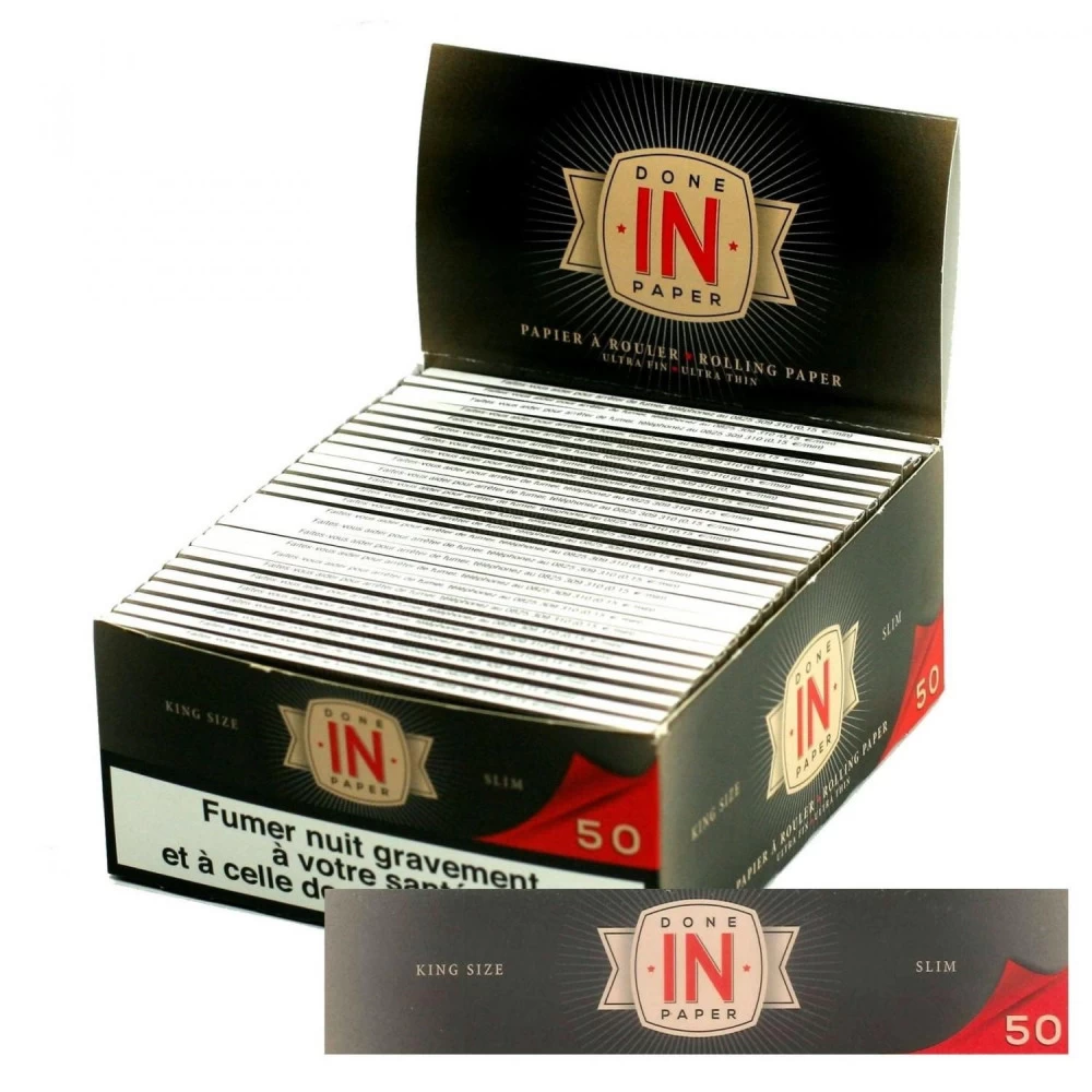 Les feuilles à rouler slim DONE IN PAPER sont conditionnées en boite de 50 carnets de 50 feuilles. Là ou la plupart des marques proposent des carnets de 32 feuilles, DONE IN PAPER innove avec son carnet de feuille slim de 50 feuilles extra fine.