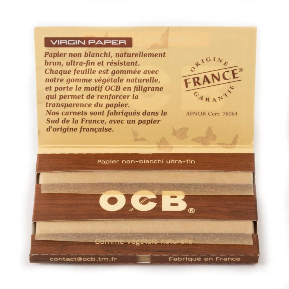Pour preuve le papier et les carnets de feuilles OCB Virgin regular sont fabriqués en France de plus sa boîte est recyclable et imprimé avec des encres végétales.