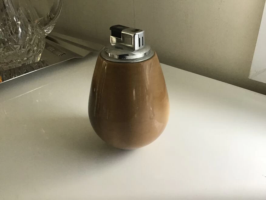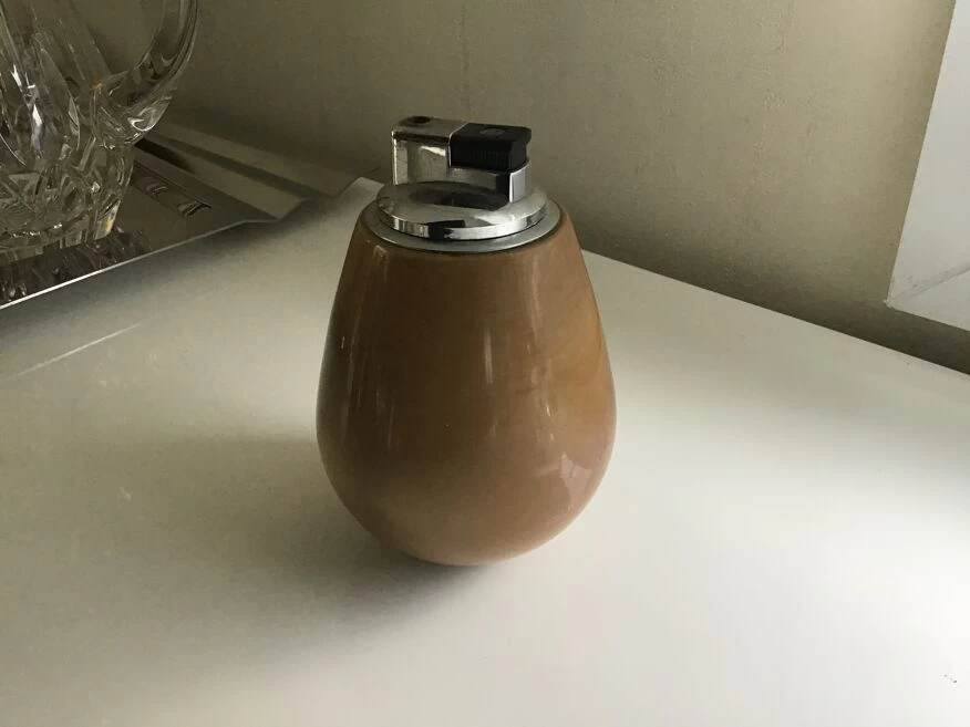 Briquet de salon en pierre précieuse marron de la marque de luxe loewe 1846 fonctionne juste charger en gaz parfait etat.