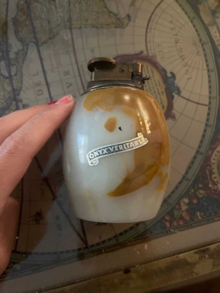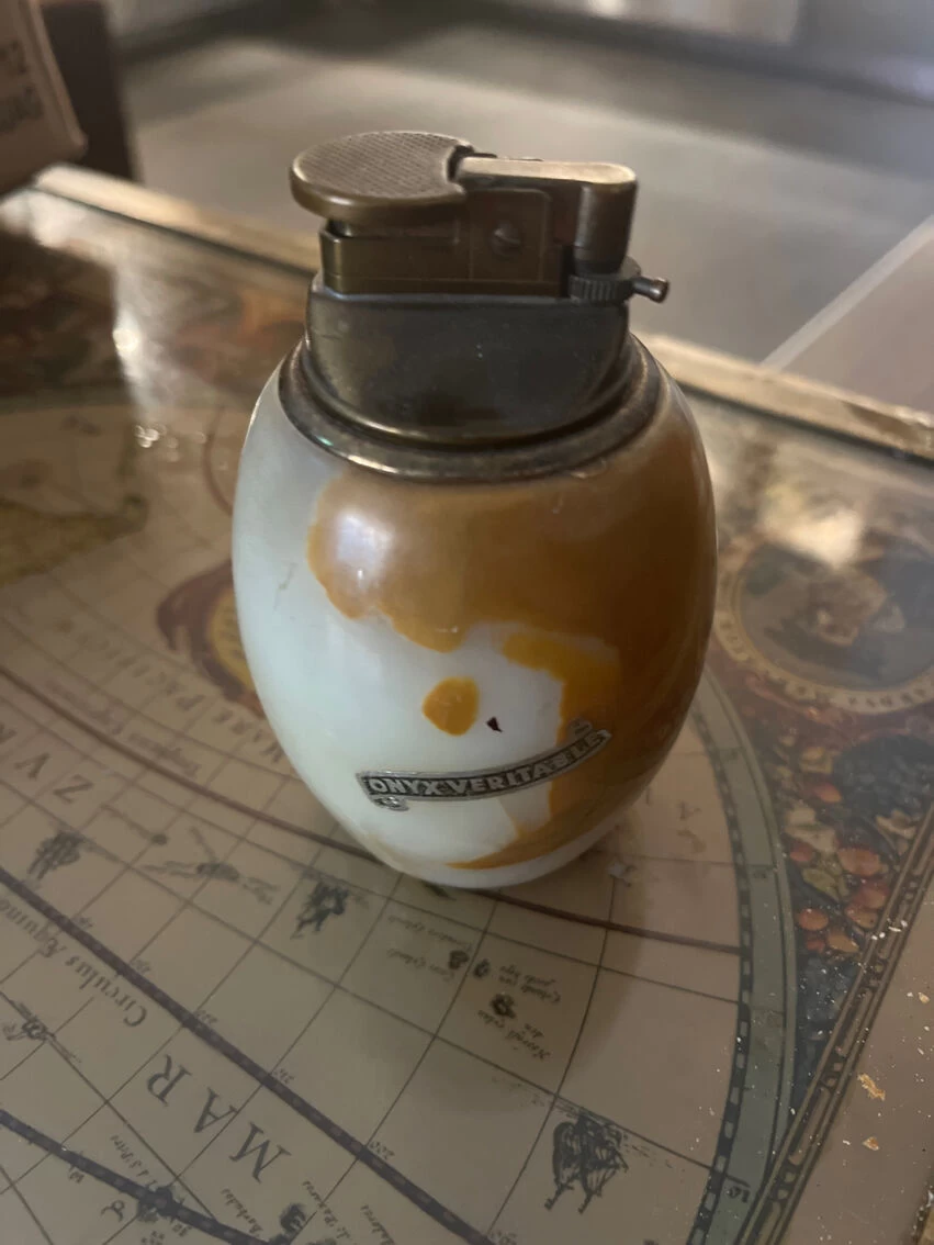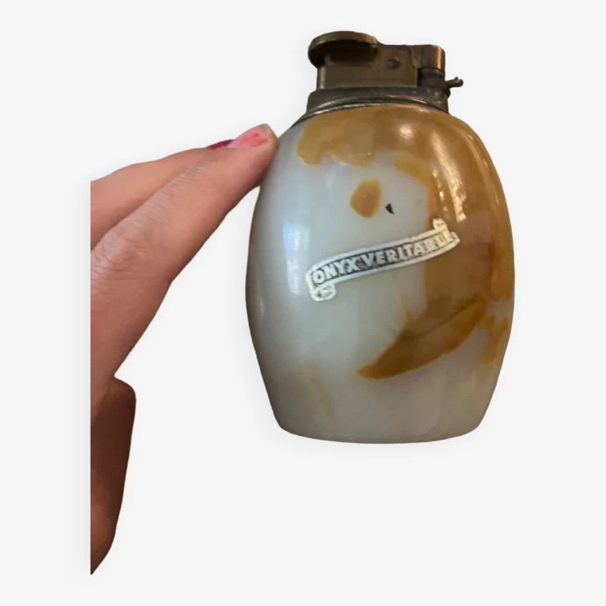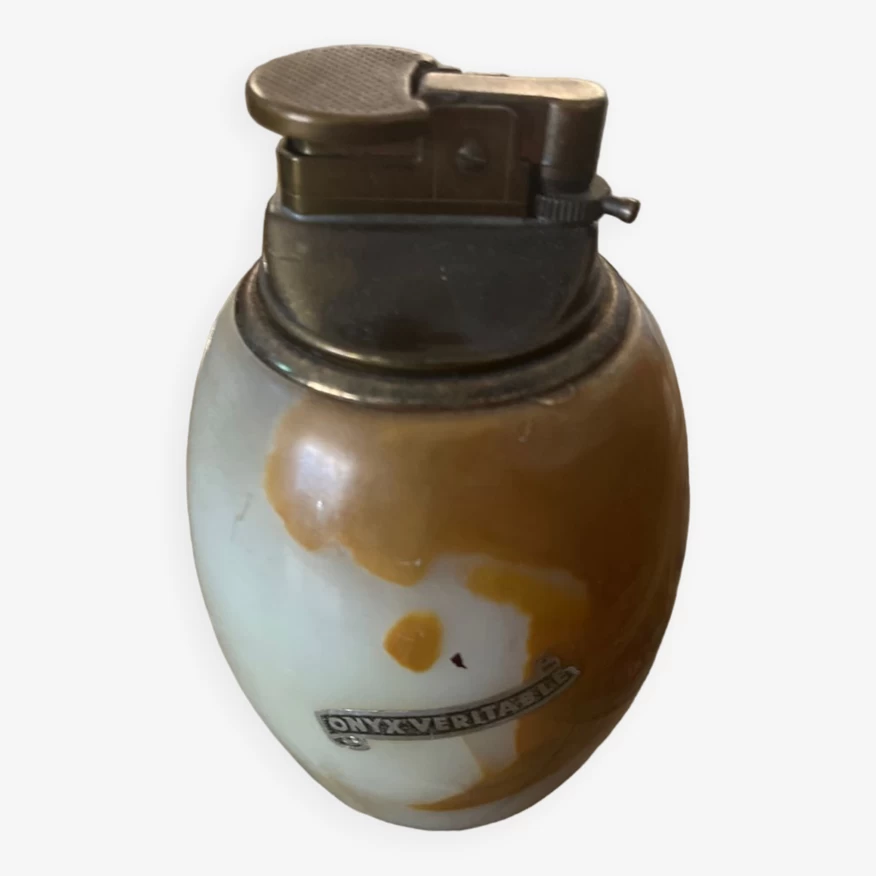 Briquet de table de collection support pierre dâonyx nuance marron.