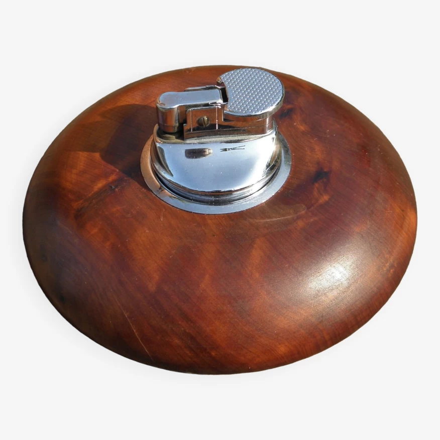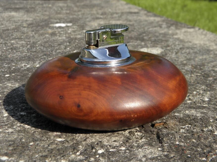 Briquet ( à gaz ) en loupe de thuya et métal chromé.