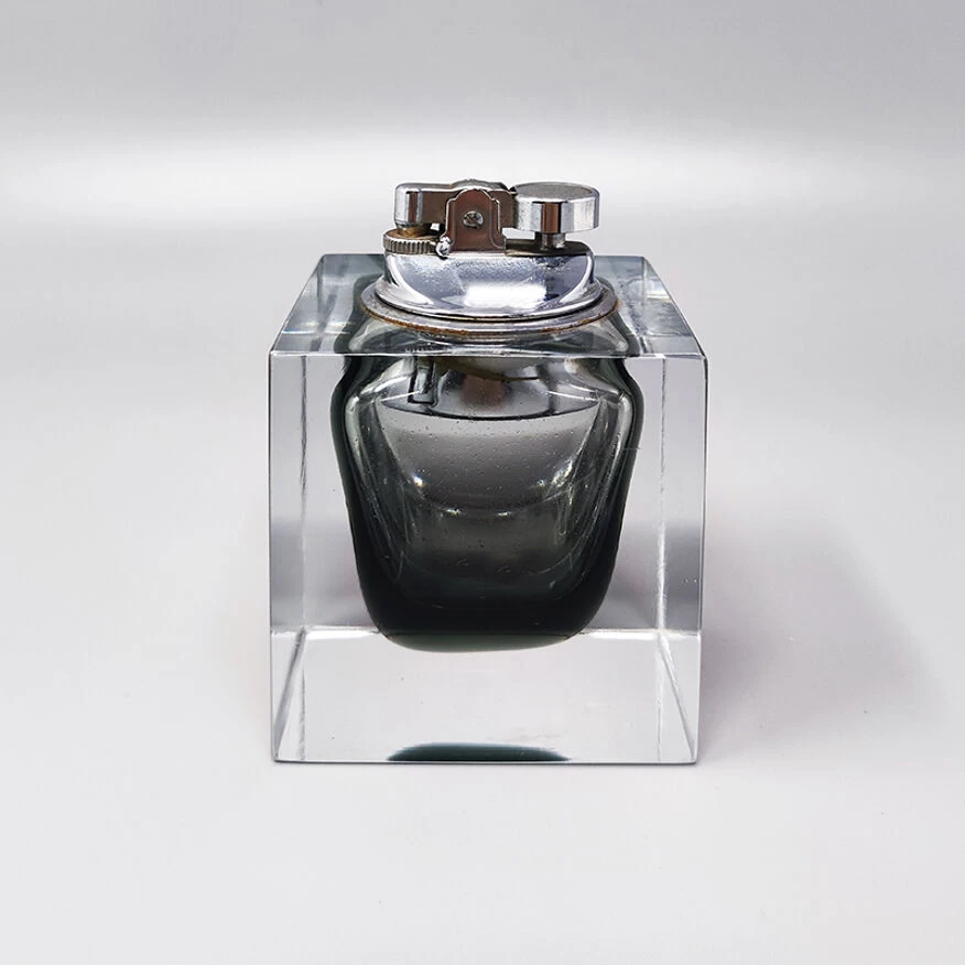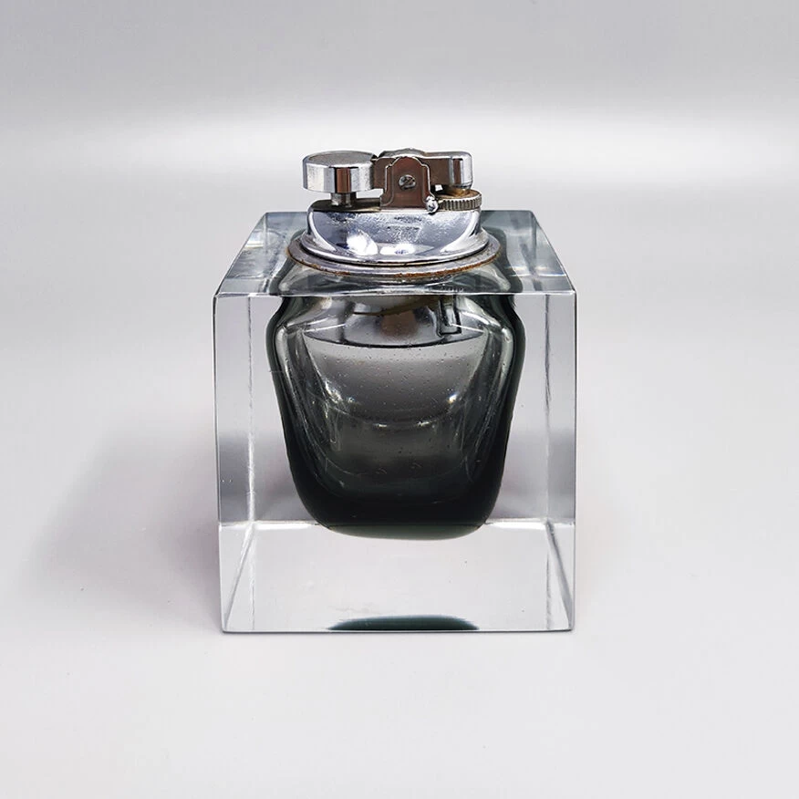 Années 1960 superbe briquet de table gris en verre sommerso de murano par flavio poli pour seguso.