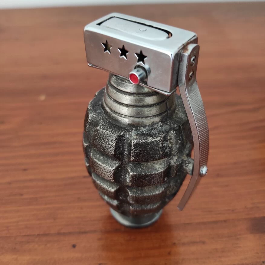 Briquet de table vintage en métal forme grenade marque pgl fabrication japonaise.