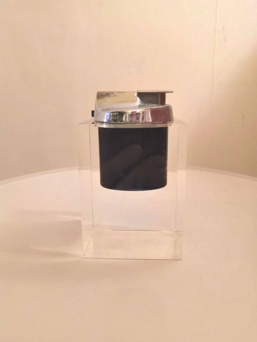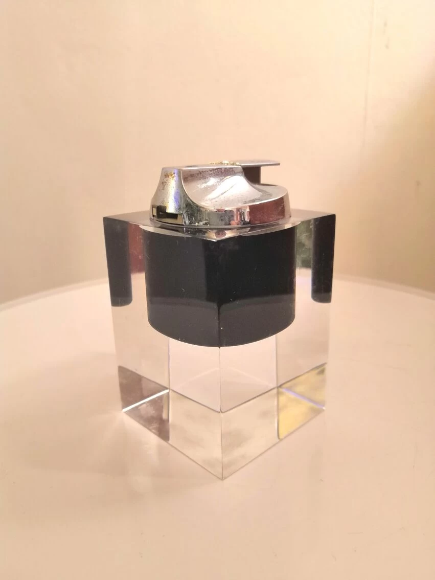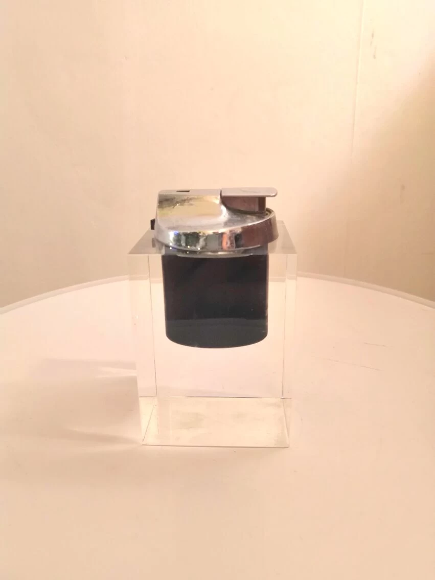Cendrier en plexiglas avec inclusion noire.