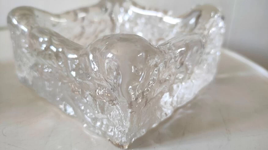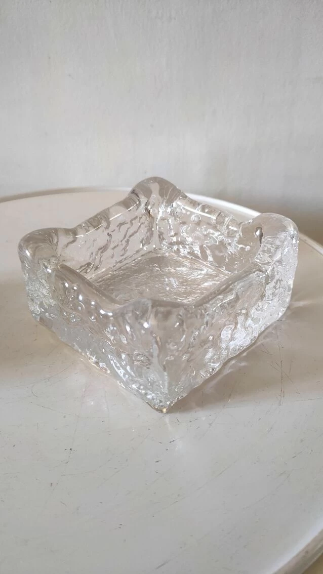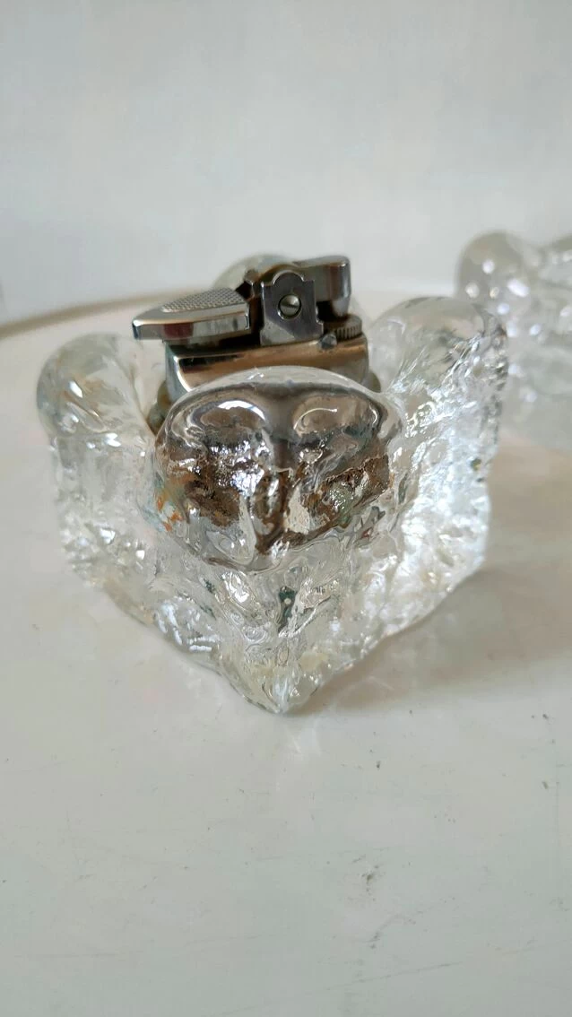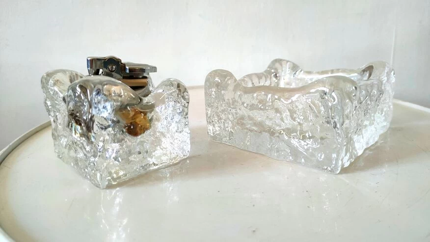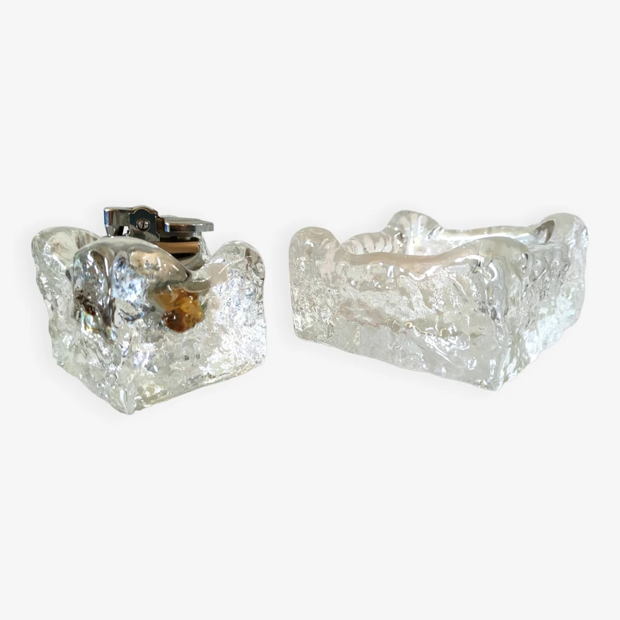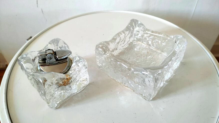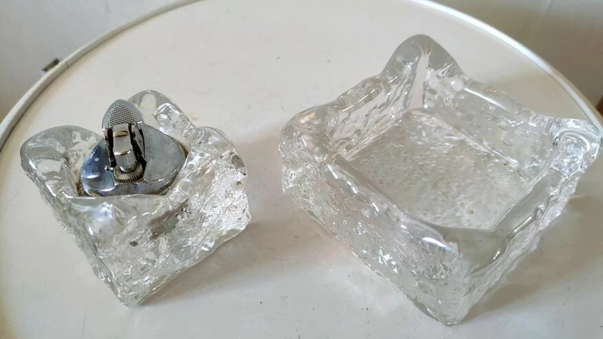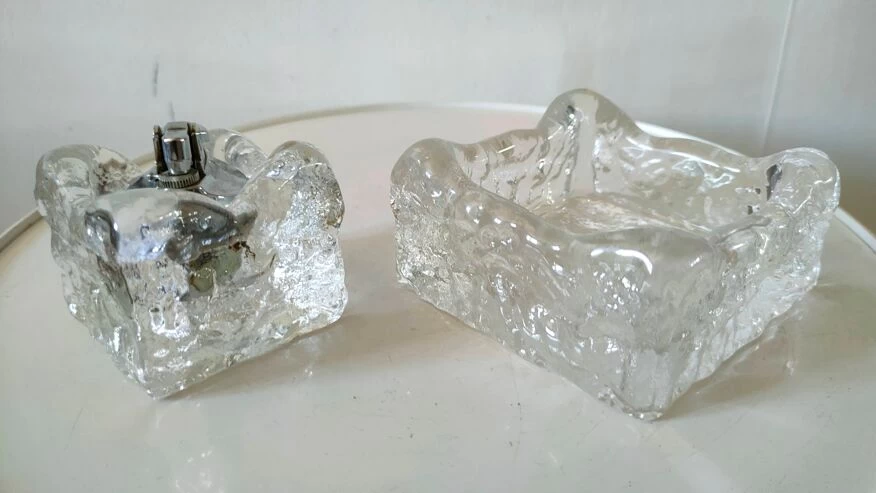 Cendrier et briquet en verre givré façon kalmar design années 70.
