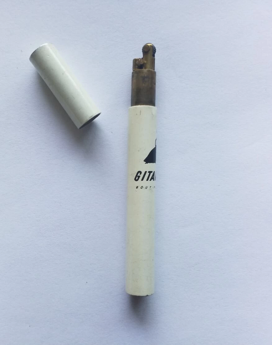 Briquet publicitaire en forme de cigarette gitane. 8cm de longueur.