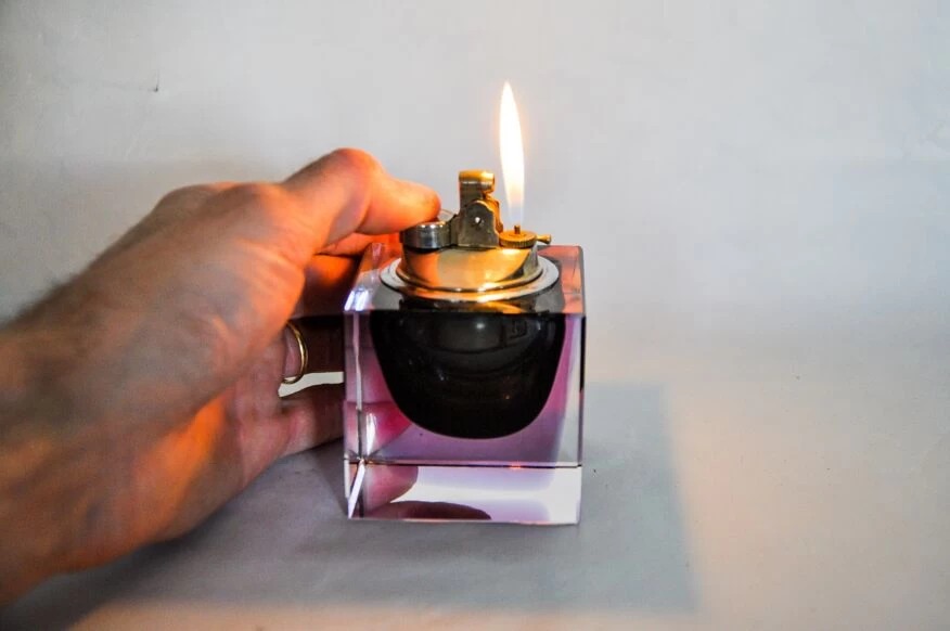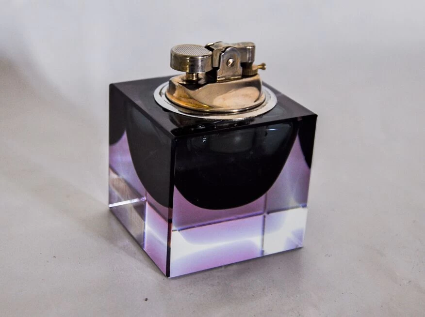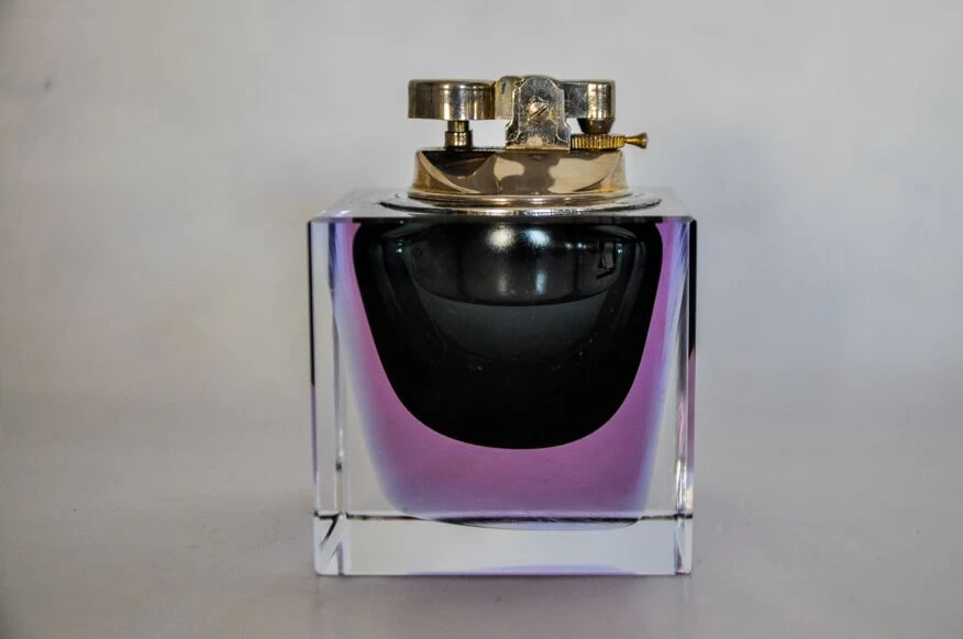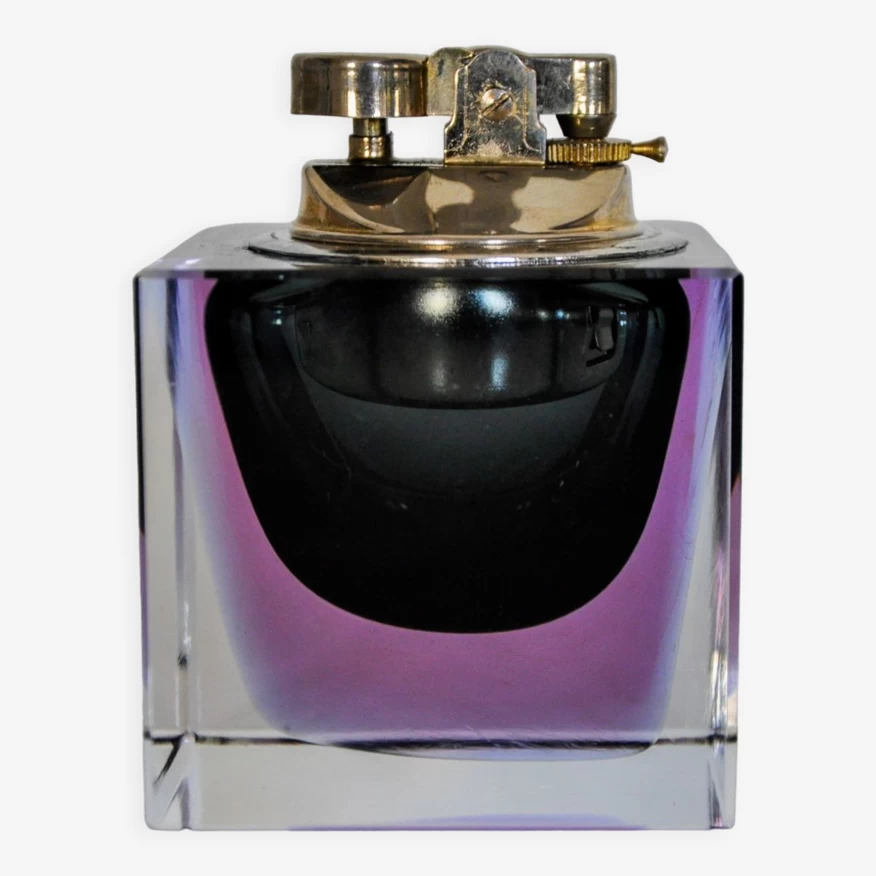 Superbe et rare briquet sommerso violet et noir désigné et fabriqué par flavio poli pour seguso à murano dans les années 1970.