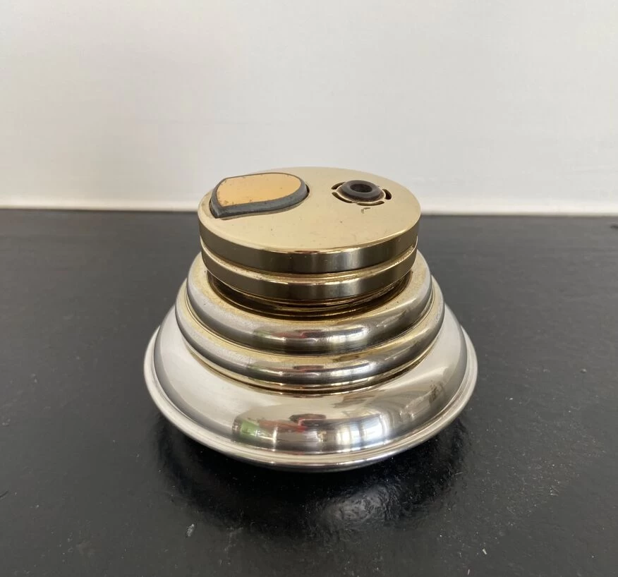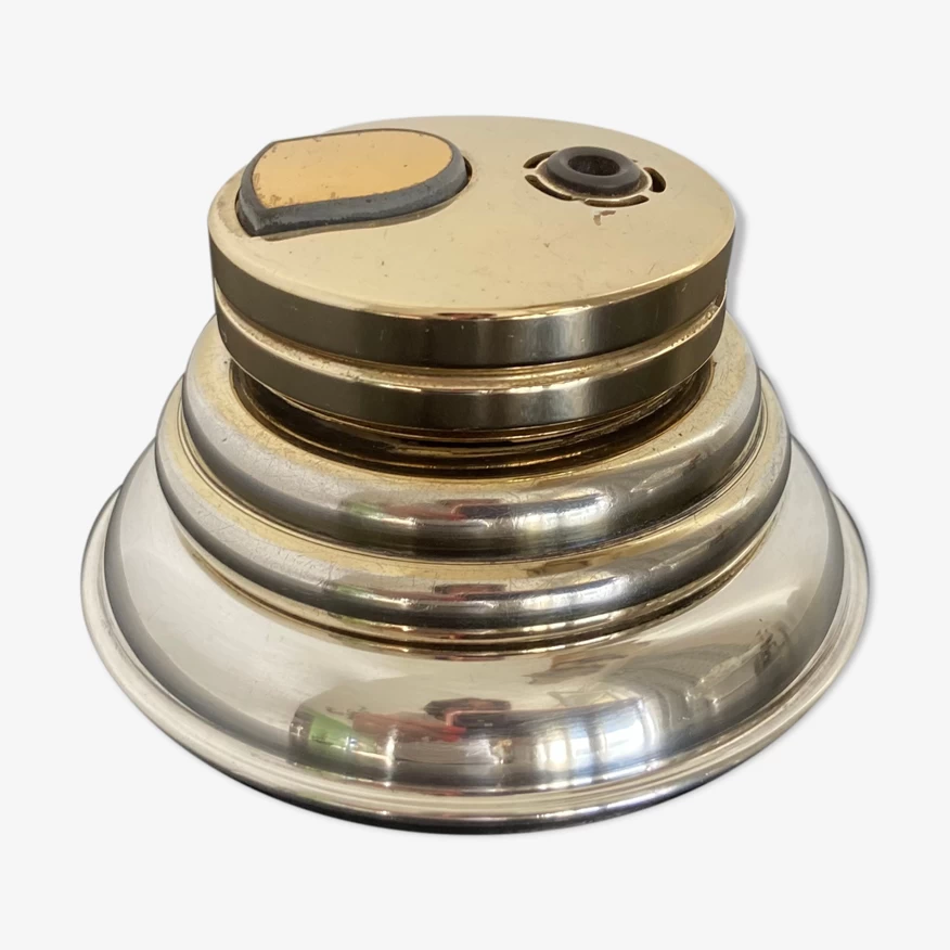 Briquet vintage, de bureau ou de table, en métal argenté et doré français.