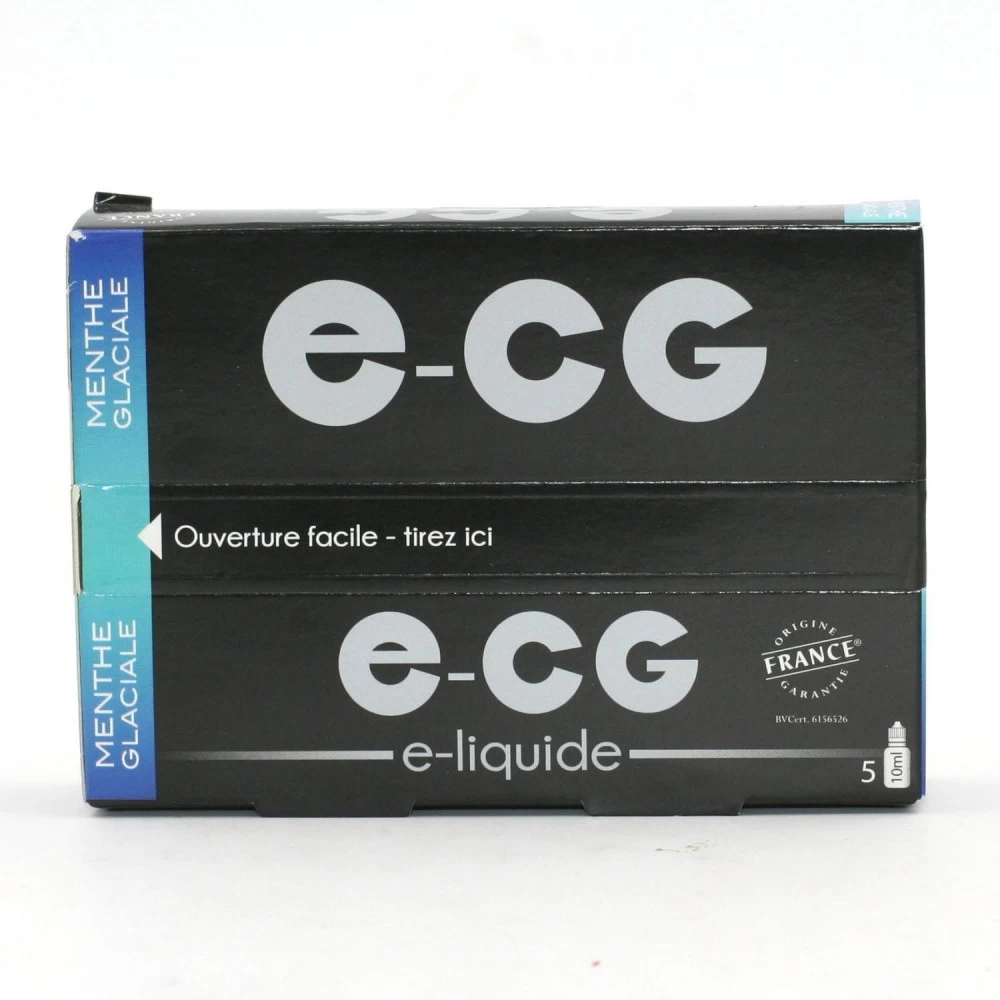 Lot de 5 Flacons E-CG – Menthe Glaciale 0 mg/mlFlacon de 10 mlComposition : 75 % de propylène glycol et 25 % de glycérine végétale, arômes naturels.