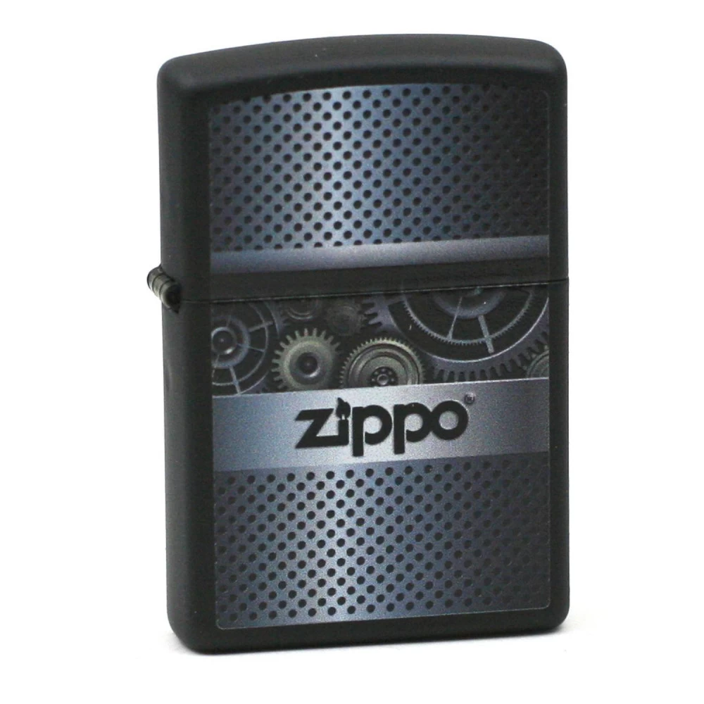 Ce Zippo possède un fond noir avec sur la face avant un imprimé avec des engrenages et le logo Zippo au centre. Cadeau idéal pour les collectionneurs ou pour son propre usage du quotidien. Les briquets Zippo sont réputés pour être résistants et fonctionnels. Ils sont garantis à Vie ! Fabriqué aux États-Unis, il est recommandé d’utiliser des pierres et de l’essence de la marque Zippo pour une utilisation du briquet optimale